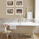 Loading... Please wait...V104-226G "Bathroom Collection 2" is a set of (4) - 17"x 14" white-framed prints by American artist Pam Britton. This 4 piece collection consists of: Country Bath with towels and a mirror, Hot Baths with towels and soap, Handmade Soaps with soap and a brush, Clean Towels with a towel and soap. This collection comes textured with an archival finish so no glass is needed, and is ready to hang. Made by skilled workers in the USA.