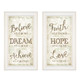 Loading... Please wait...V467-226G "Faith/Believe", by artist Mollie B. is a set of (2) white framed art prints with sayings about "Believe with all your heart"..... and "Faith makes all things possible...." The surface of the prints is textured with a fade resistant coating so no glass is necessary. Arrives ready to hang. Made in the USA by skilled American workers.